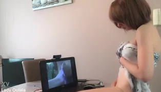 WATCH MY GF! Oiled Russian Teen Fingering Pussy on Chair